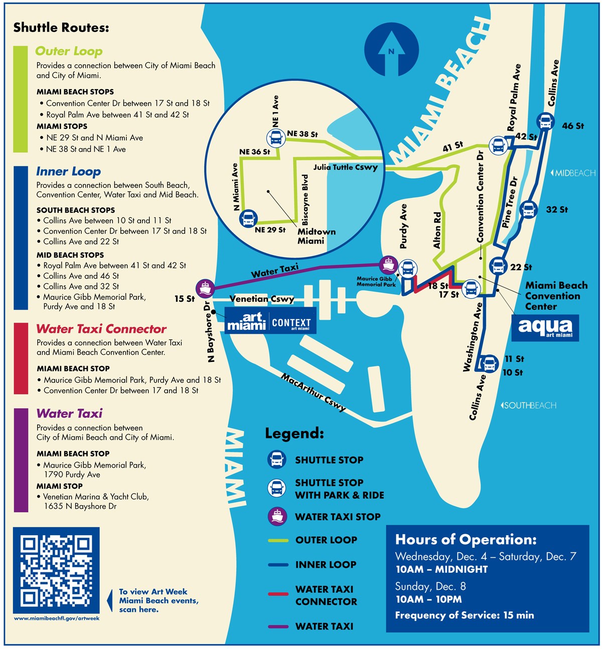 Additionally, the City operates the Wynwood Trolley & the Biscayne Trolley which are free local circulators which connect at the Adrienne Arsht Center metro mover station. The City will be providing additional vehicles from 12/7-12/10 to supplement the service as well as providing later service.