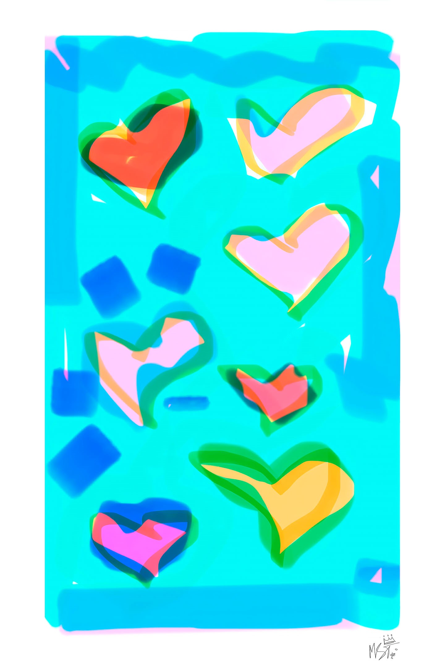 MST ( she/her) is the pseudonym of the international pop-neo expression artist, emerging in the art scene. Exclusively, ARTE GLOBALE presents a premiere of seasonal artworks specifically created and designed in Miami. Her background is excellent and fascinating. After having to travel and move extensively and frequently from a young age, she broke with her past, destroyed almost all the paintings she had made, and started anew. MST cultured flair portrays a unique profile of those eager for artistic expression. Her degrees expand from art history, the Academy of Arts, to philosophy, aesthetics and psychology. Her mission extends to create connections of joy and freedom, to promote active well-being and philanthropy.