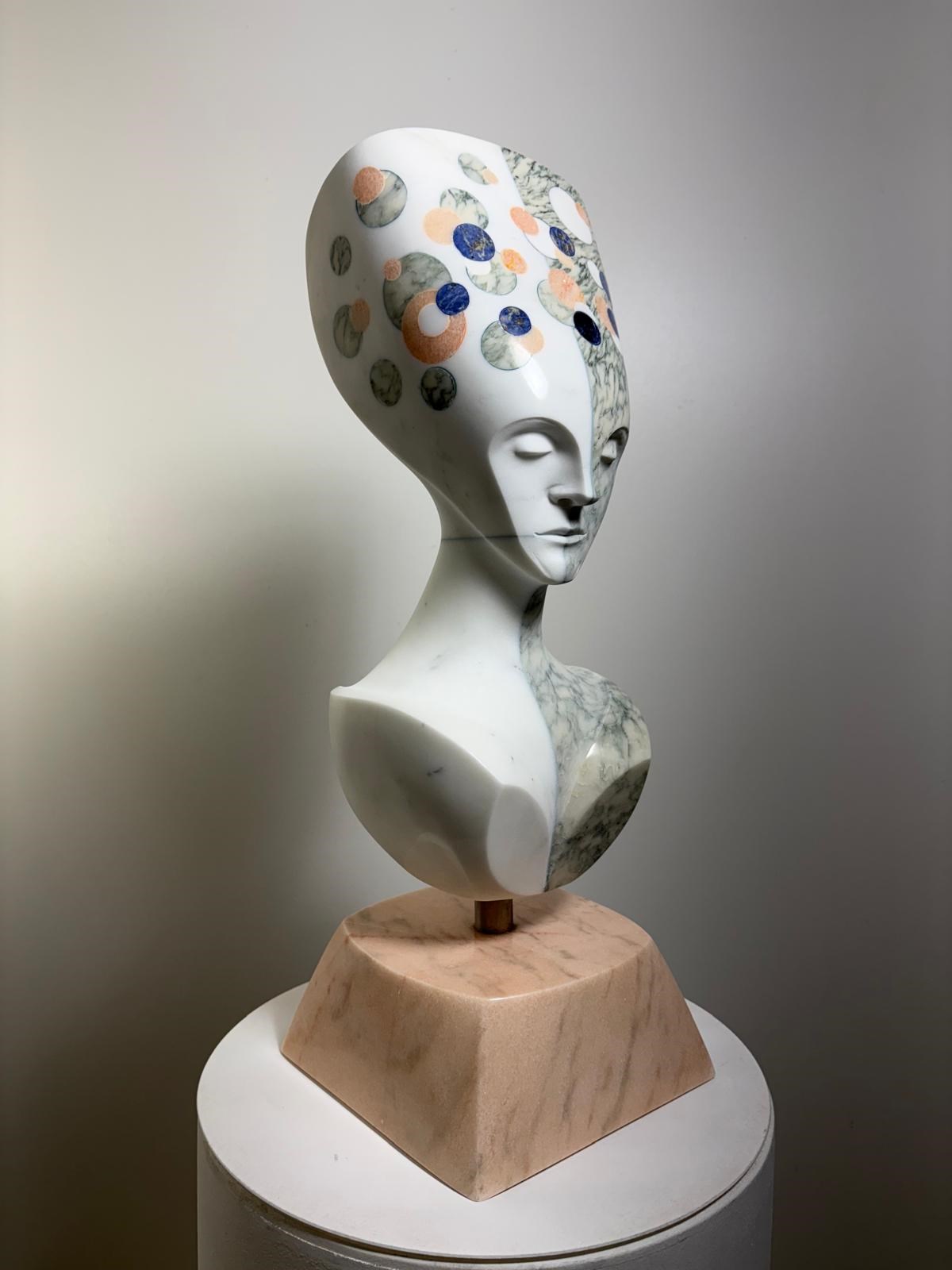 Domenico not only researches the most exquisite marbles and precious stones in the valley of the Alps Apuan, Carrara, Tuscany, but also creates extraordinary art by reinventing them with an exclusive flair, executing sculpture at the height, modelling the marbles with skilled ease, breathing passion, love and moving feelings.