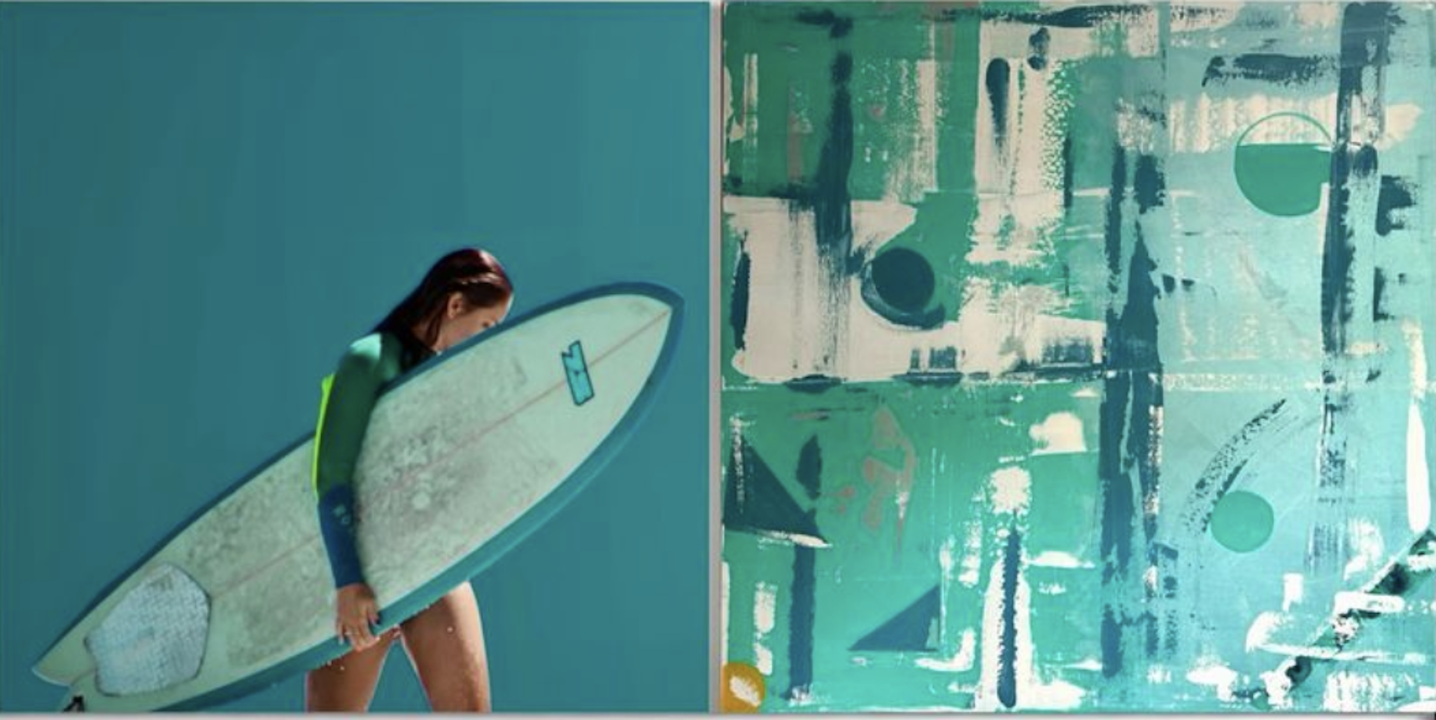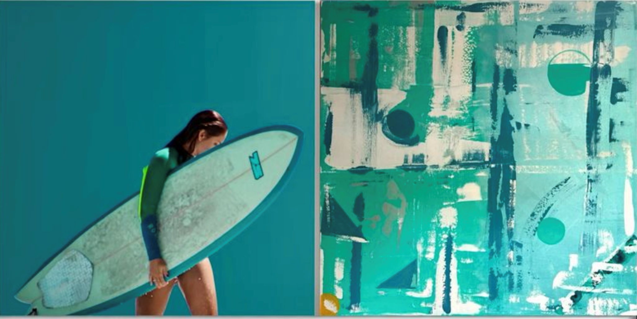 Roberta Wynwood's oeuvre centres on the deep relation between the vision and its vibrant energy, expressed through sophisticated arrangements. Transcending powerful images and translating them into an abstract, colourful experience. A contemporary and elegant bliss of art-photography and vibrant paintings, an embracing relation, which initiates a narrative. An immersion into a unique environment. She employs vibrant colours, mixed materials, and innovative printing techniques to create emotionally resonant and often thought-provoking visual pieces. Playful, intricate, and provocatively imaginative, her work invites us into a world of self-exploration and creative curiosity. Through her Multi-technic Diptyque, canvas and photos merged in a musical fluidity.