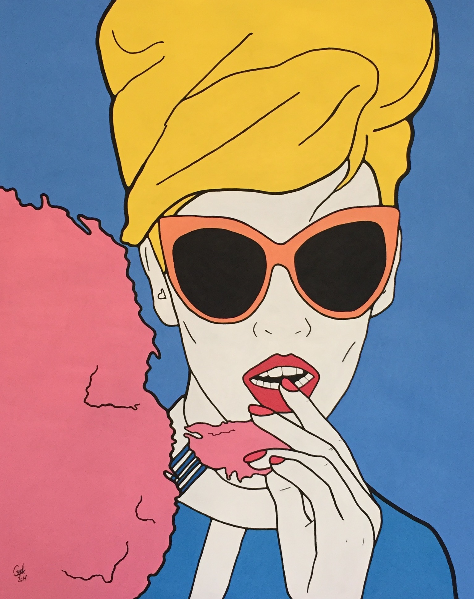 ‘My current series ‘Sw16’ is named after the London postcode where I have been based for the last 17 years. The series itself is based on current print magazine imagery, with an interest in making contemporary figurative paintings where the images are new of the ‘now’.’ Emma Coyle Emma Coyle’s art aesthetic and narrative are rooted in the world of today. The artist’s canvases’ figures are painted in a Pop-Matisse unique style, the signature of Emma’s art. The contemporary quotidian life from the streets of London to New York City and LA, the people in the magazine glossy images, are re-invented by the artist into icons, with a seductive colour palette and a fluid sign of the forms, becoming as universal as near to us. They resonate with our imagination, princes and princesses of a quotidian adventure. Every painting tells an infinity of stories, which live hovering outside the boundaries of the canvas. Emma’s art speaks a language as familiar as yet glamorous, starring the next-door personas, the images mirrored in a window, the night out and the protests and ultimately art itself.© Arte Globale Limited. ‘I am constantly collecting images from print magazines, whether I am working on an ongoing series of paintings or not. I choose an image which to me is solely strong in form, this is most important for me to produce a strong painting.’ Emma Coyle Drawing feelings and aesthetics from the Pop Art of the 50s and the 60s, Matisse, Japanese advertisements of the 1920s, Silver Screen film still and Fashion photography of the 1960s. Emma Coyle creates colourful figurative sophisticated canvases reinventing print media imagery and advertisements, which she collects and uses as a starting point. Emma's work is collected worldwide and part of the Yukyung Art Museum in South Korea's permanent collection. She won numerous awards, like the Art Founding Council Award of Ireland, and her work has been published by prestigious publications like the Sunday Times.
