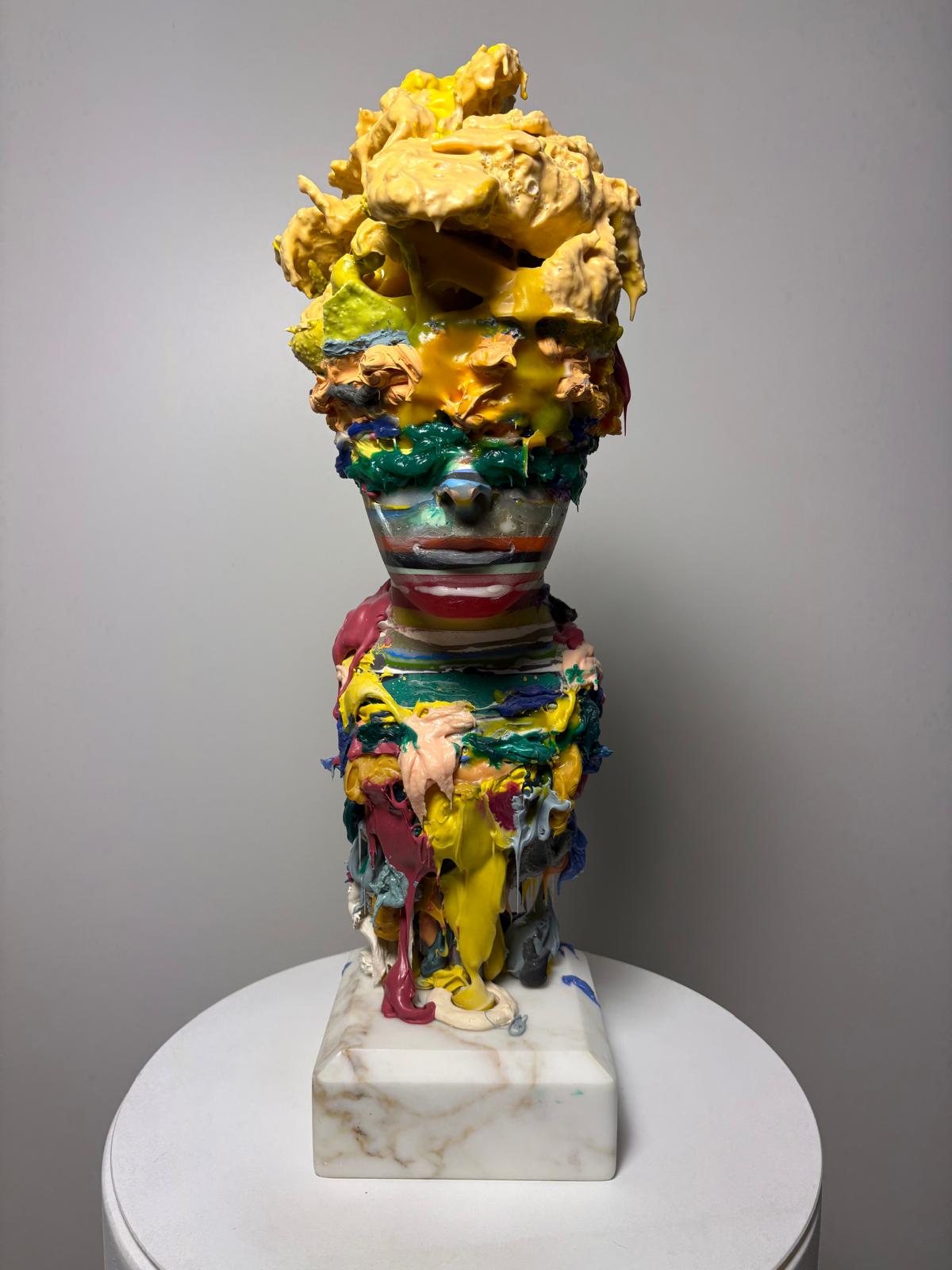 Roberta Wynwood (Roberta De Paoli) was born in 1964 in Milan. Growing up in the historical Italian city, Roberta absorbed not only the Renaissance art but also the lively cultural vibes of design and fashion, diving into innovative forms, colours, and textures. After travelling extensively and experimenting with photography, she then moved permanently to sunny Miami. It is here that, to her, painting became a natural way to express and develop her artistic talent, absorbing the influences of American Expressionism and Pop Art. Working in her studio, reflecting memories and emotional energy, with her creative, serene and balmy flow, the artist started to blend the two media, resulting in the arresting and captivating unique art-assembly.