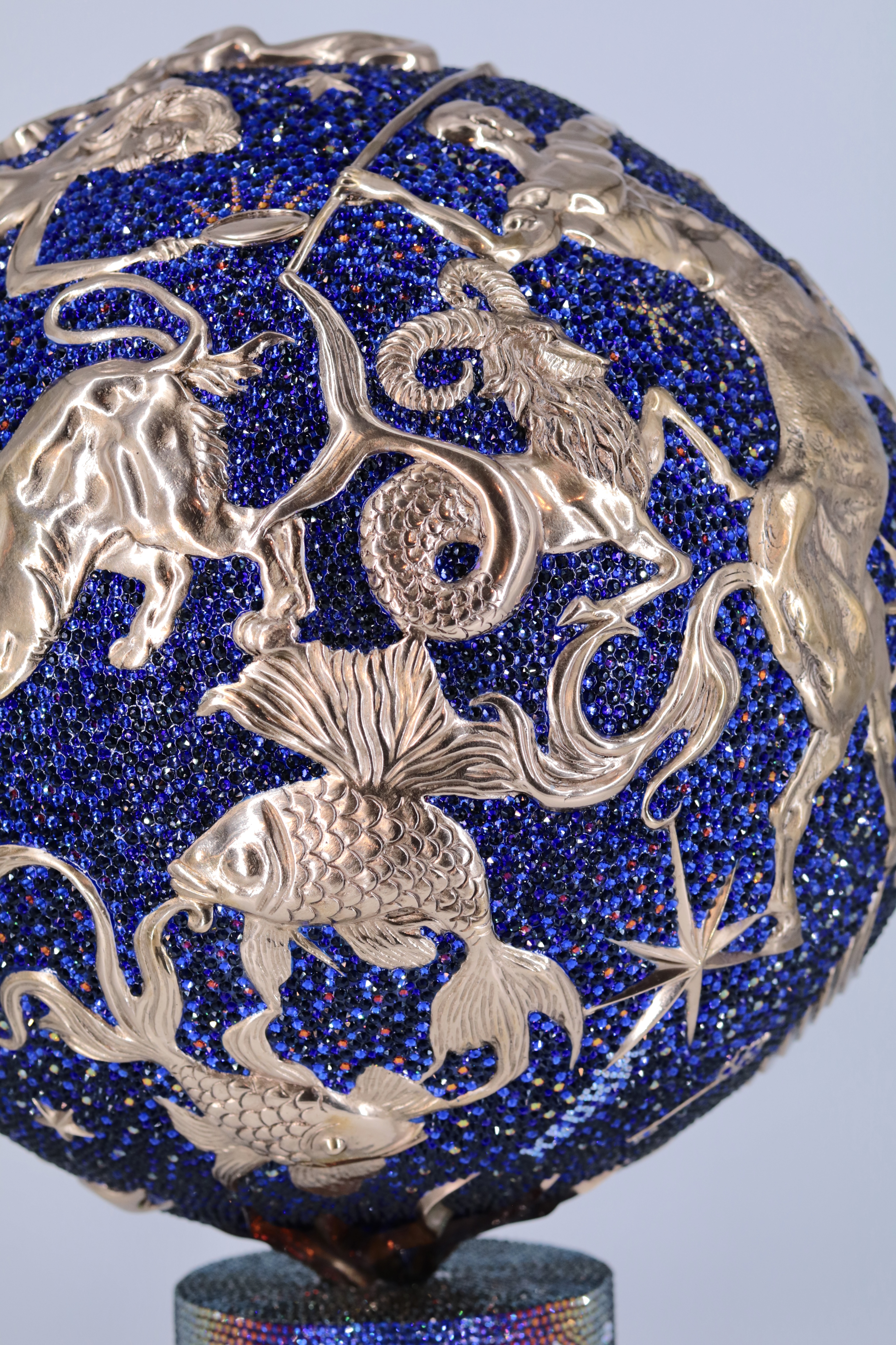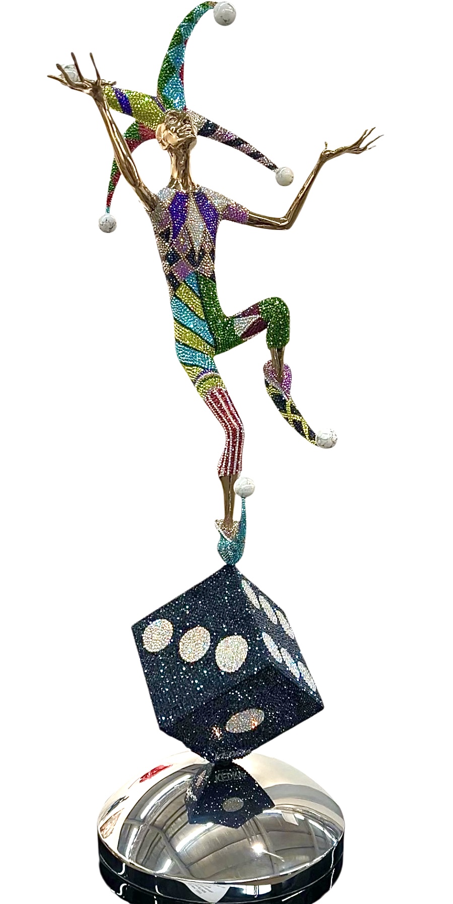 Working predominantly with bronze, I am captivated by its versatility and timeless quality. This material allows me to convey the subtleties of texture and movement, creating pieces that resonate with a sense of permanence and grace. The addition of Swarovski crystals in select works serves to highlight the interplay of light and surface, adding a dynamic element that engages viewers in a constantly shifting visual experience.