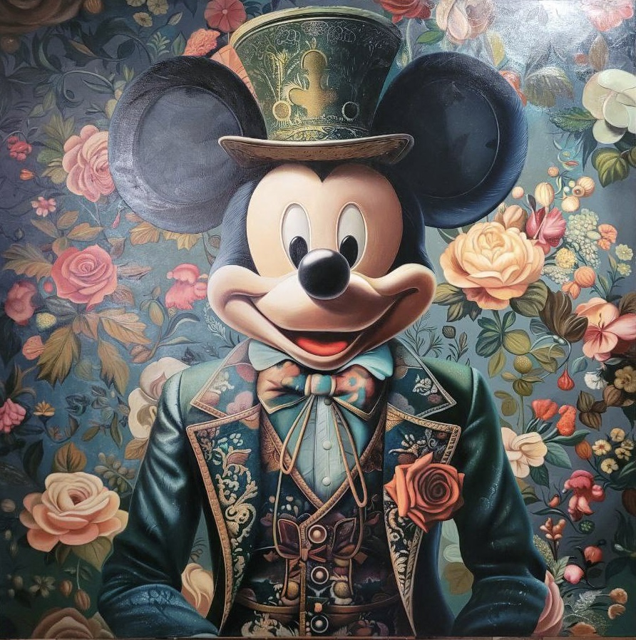 Through this piece, the artist establishes a dialogue between the timeless and the modern — between the heritage of old-world painting and the aesthetics of pop culture — inviting the viewer into a realm where history, imagination, and irony coexist harmoniously.