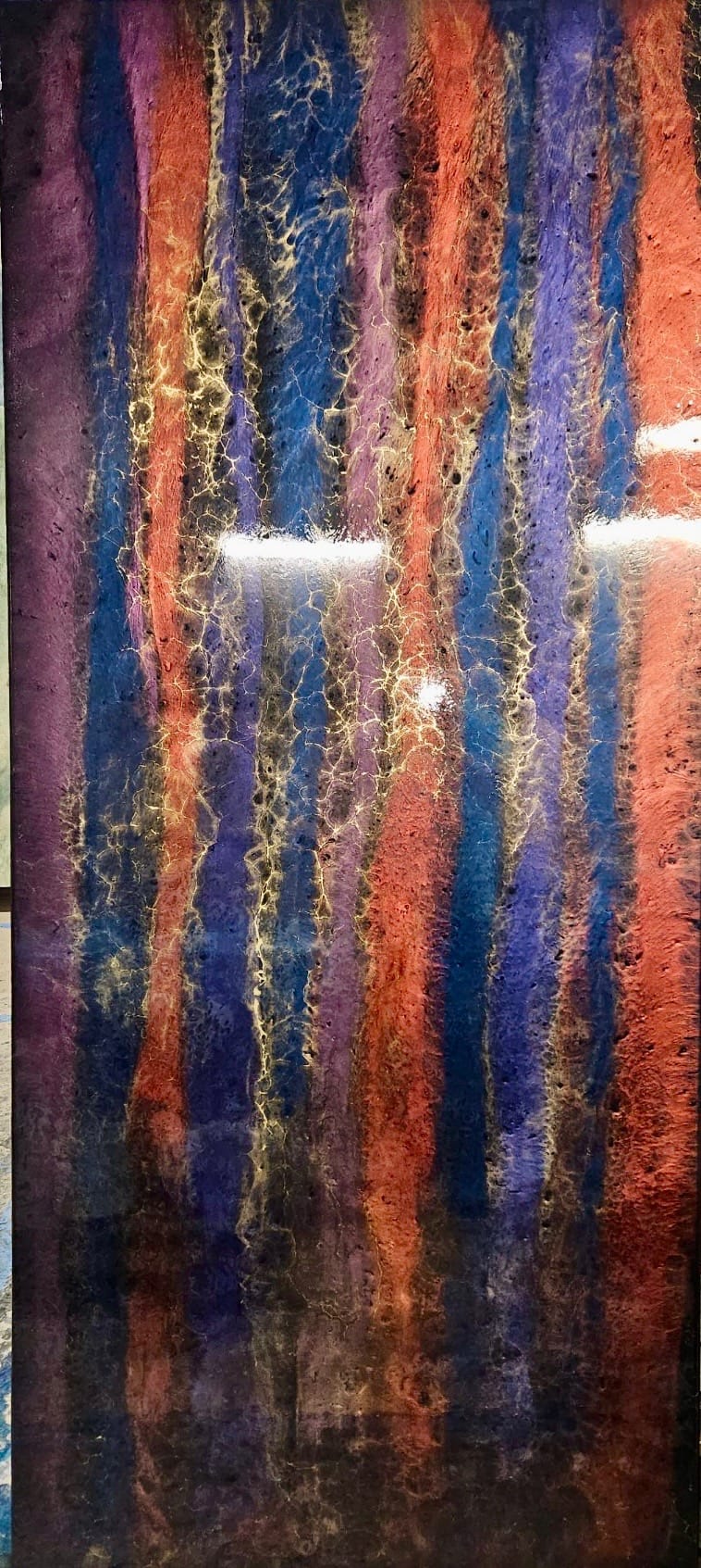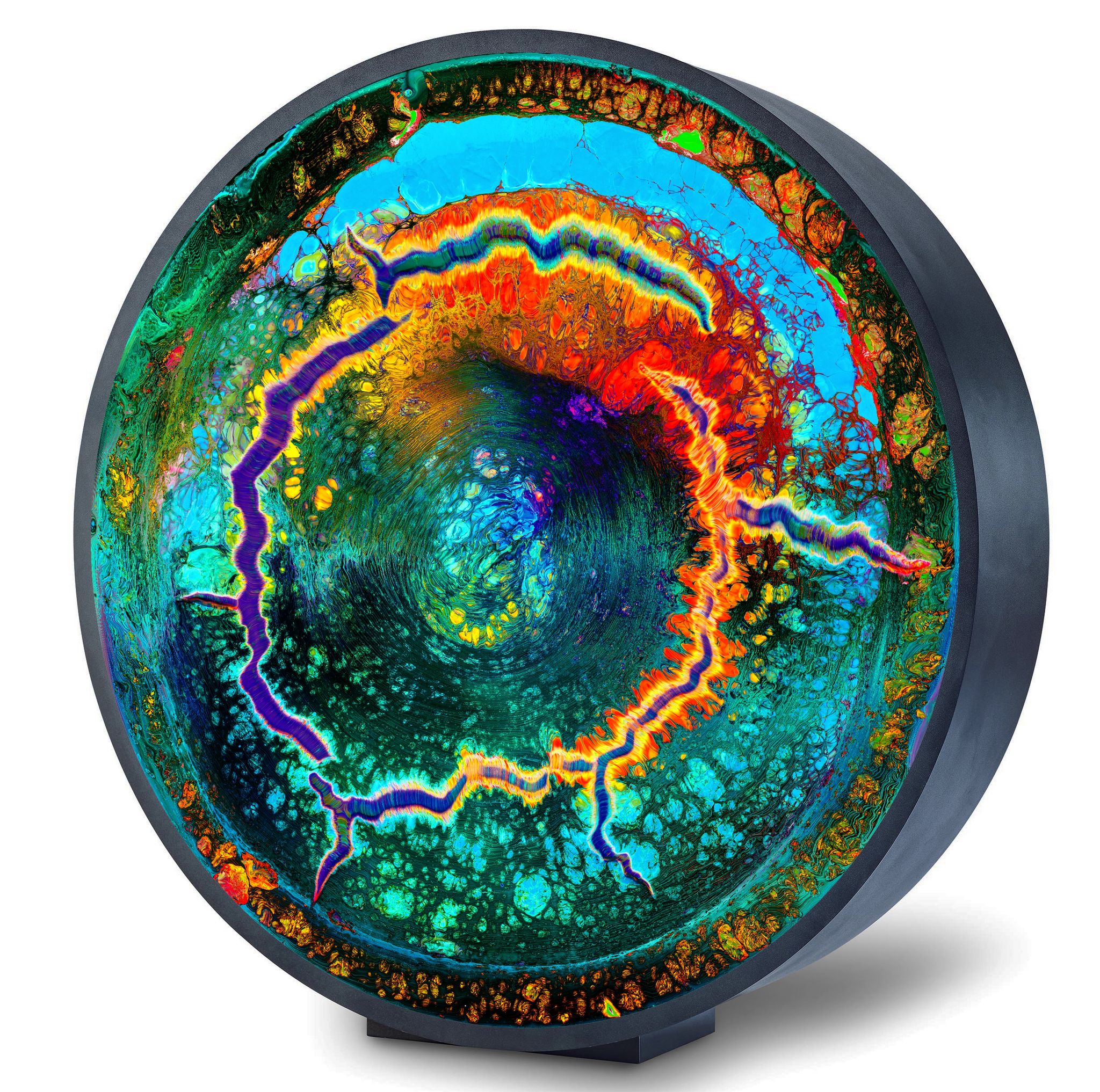 Working primarily in resin, Lowe is captivated by the material's fluidity and the myriad of colours and textures it offers. He finds joy in resin's unpredictability, and it's incapability for replication, producing artworks that are entirely unique. The element of surprise and the thrill of exploration have both become central to his artistic practice.