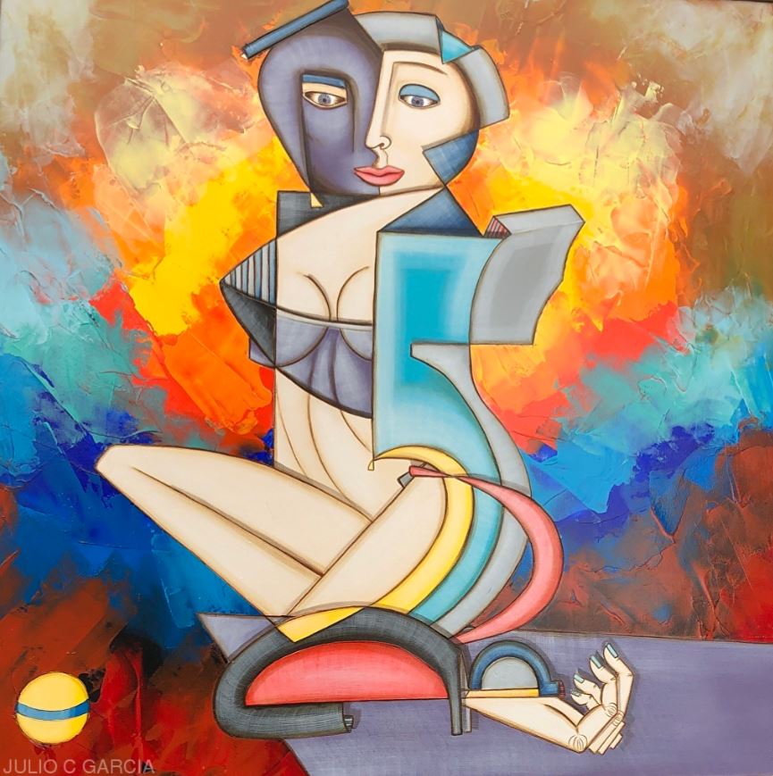 Julio Garcia's birthplace, Baja California, Mexico, defines his artistic practice and connection to nature. Garcia's work examines the complexity of human experiences. He depicts vibrant, disassembled figures that possess an energy that emanates from the canvas itself. In his world of imagery, emotions rule and new ideas emerge. Garcia describes his work as surrealistic with ancient overtones. His work is rich with colour and texture, possessing a tactile, three dimensional quality that fosters a connection between spectator and subject. In this regard, Garcia's vibrant compositions are a true celebration of humanity.