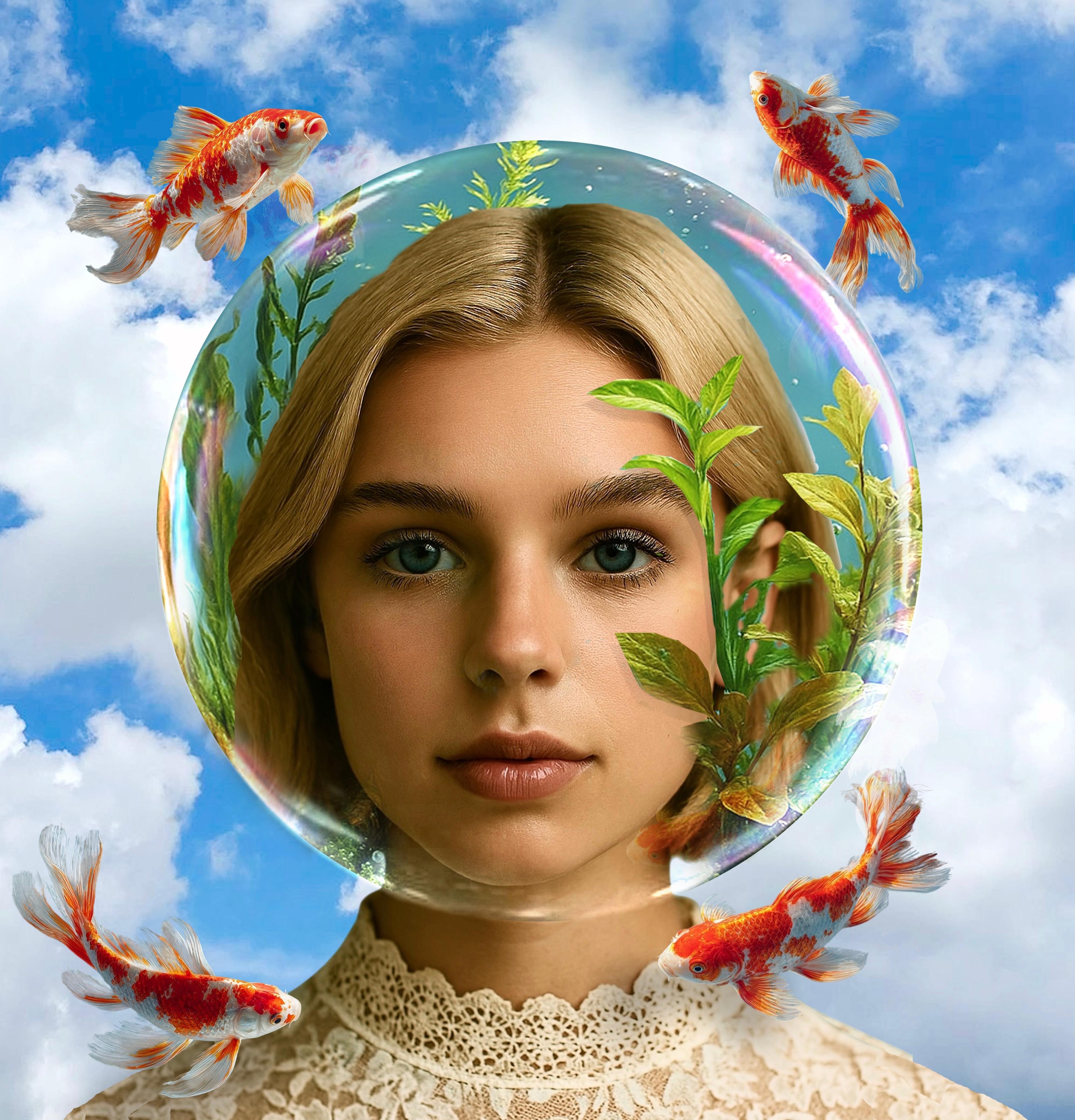 Through this poetic imagery, the artist invites contemplation on the delicate boundaries between dream and awareness, isolation and inner liberation. Water becomes a vessel of the subconscious, while the vastness of space mirrors the infinite dimension of thought. The result is an intimate cosmos where silence, nature, and the human spirit coexist in perfect equilibrium.