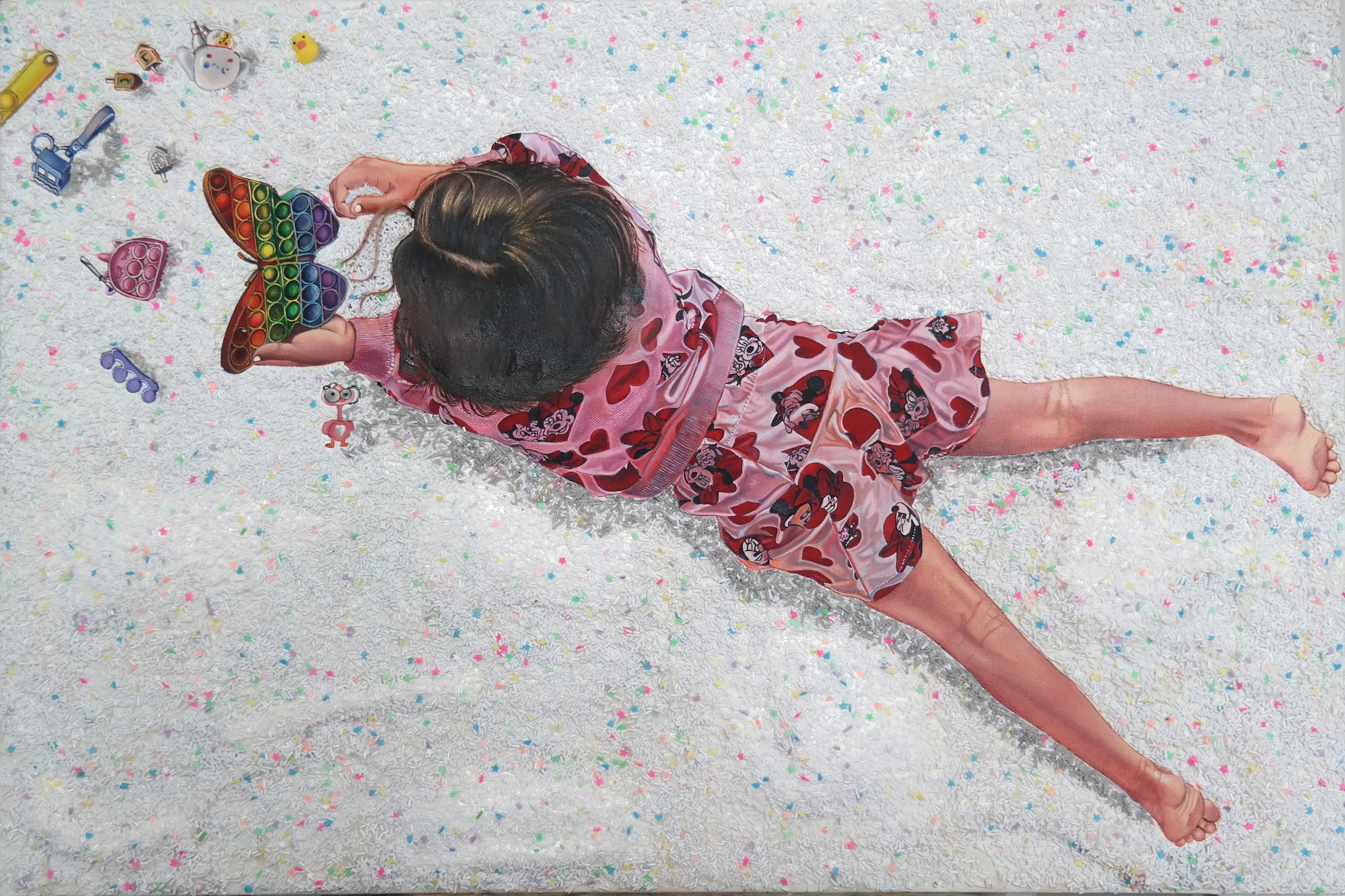 Through this work, the artist explores the dialogue between material and emotion, solidity and softness. Knotty becomes a meditation on complexity made beautiful — a sculptural painting that invites the viewer to lose themselves in its rhythmic flow of color and light.